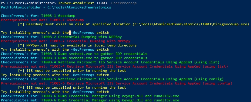 Some techniques will have a Dependencies section. In order to check with the pre-requisites are met, we can run the following command with the technique we want to use.