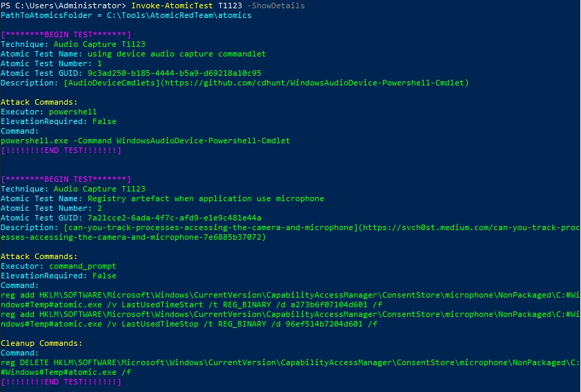 Invoke-AtomicTest T1123 -ShowDetails
